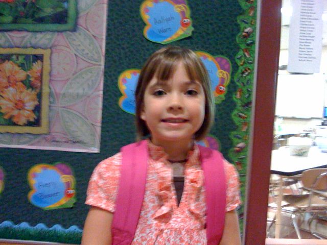 Well this morning I walked Abbie into her first day of first grade. A college friend of mine Twittered me the other day to question me about whether we were actually old enough to have kids going to first grade. Well, here’s the proof.