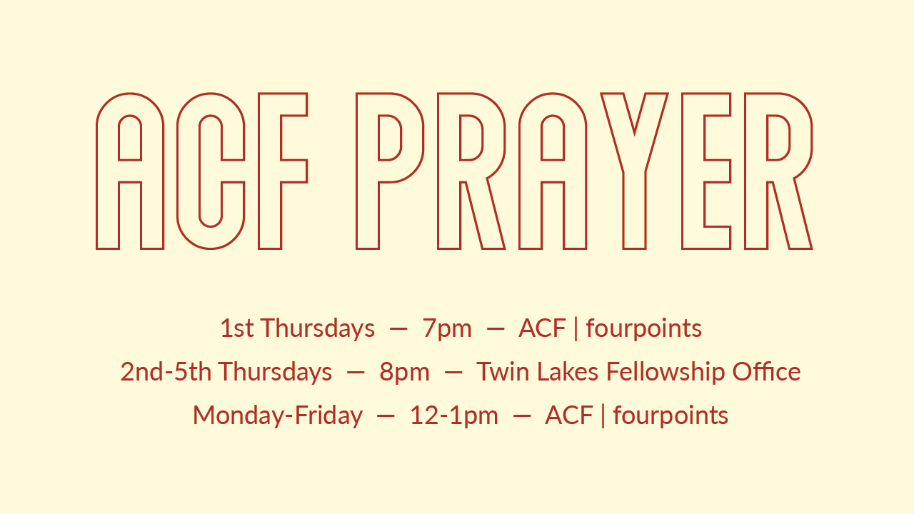 - Prayer Hour @ ACF | four points – Monday through Friday, 12pm Rm. 121